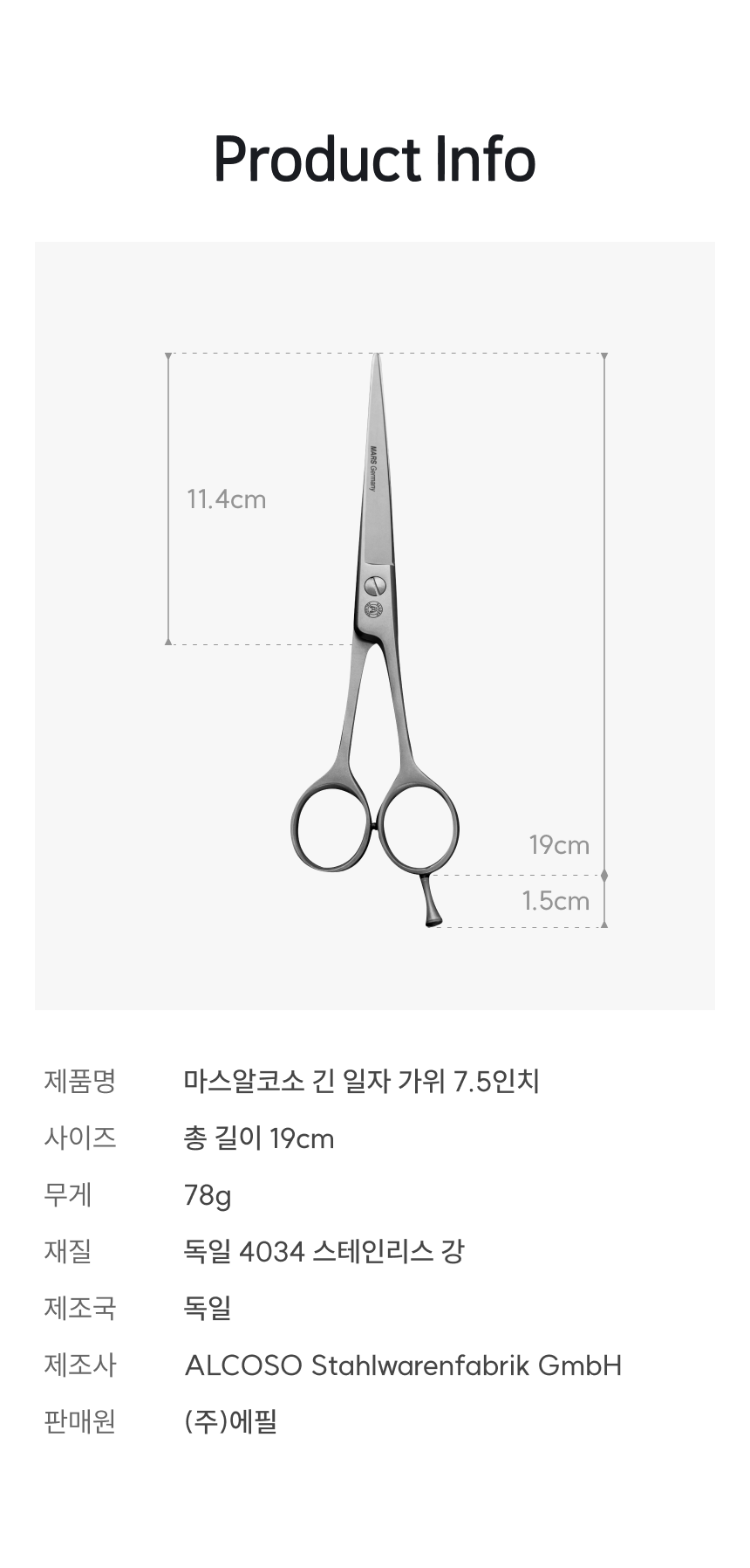 긴 일자 가위 7.5인치 (19cm)