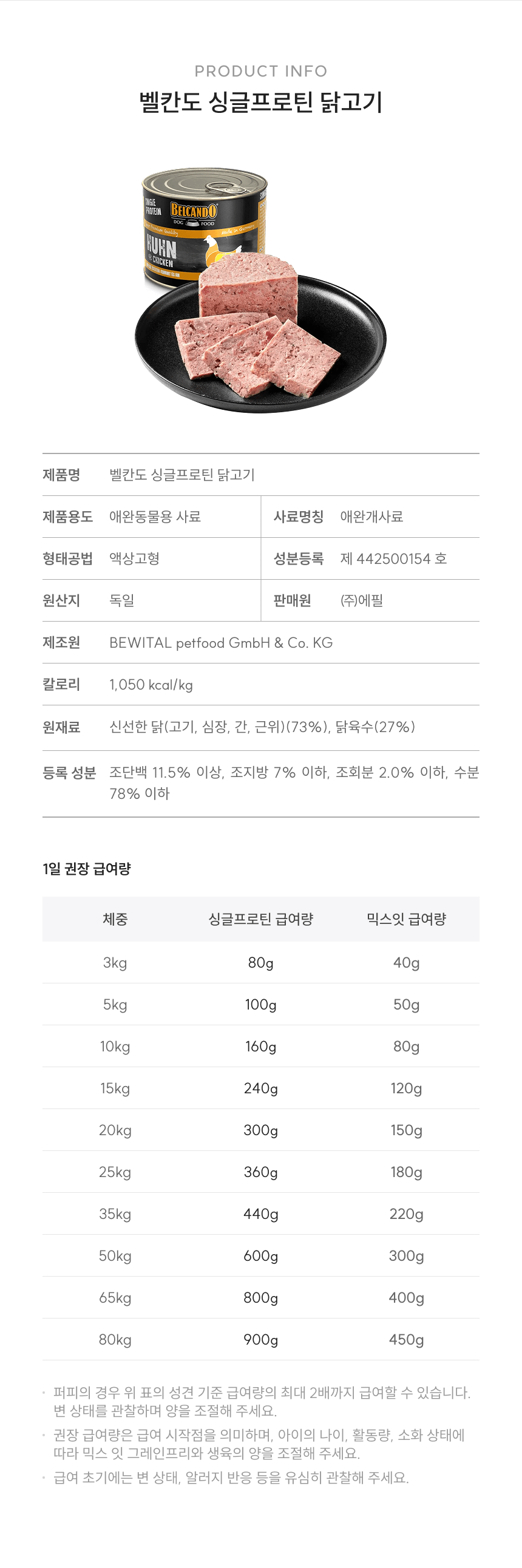 간식으로 급여 가능하며, 건사료와 혼합하여 급여하면 단백질을 채워줄 수 있습니다.