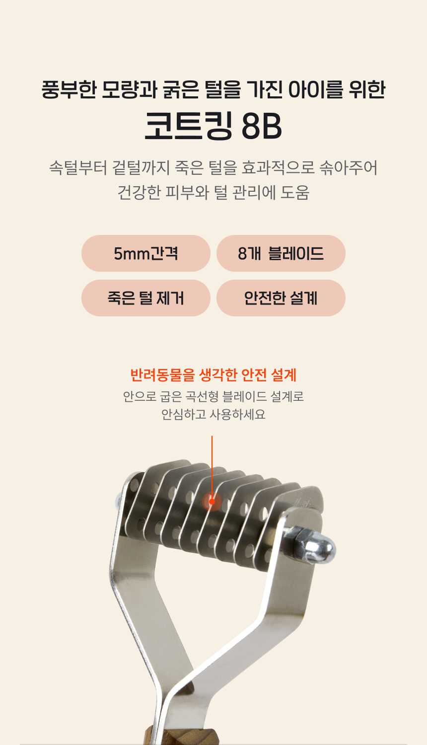 갈고리의 칼날이 털을 정리 해주면서 단정해지는 느낌입니다